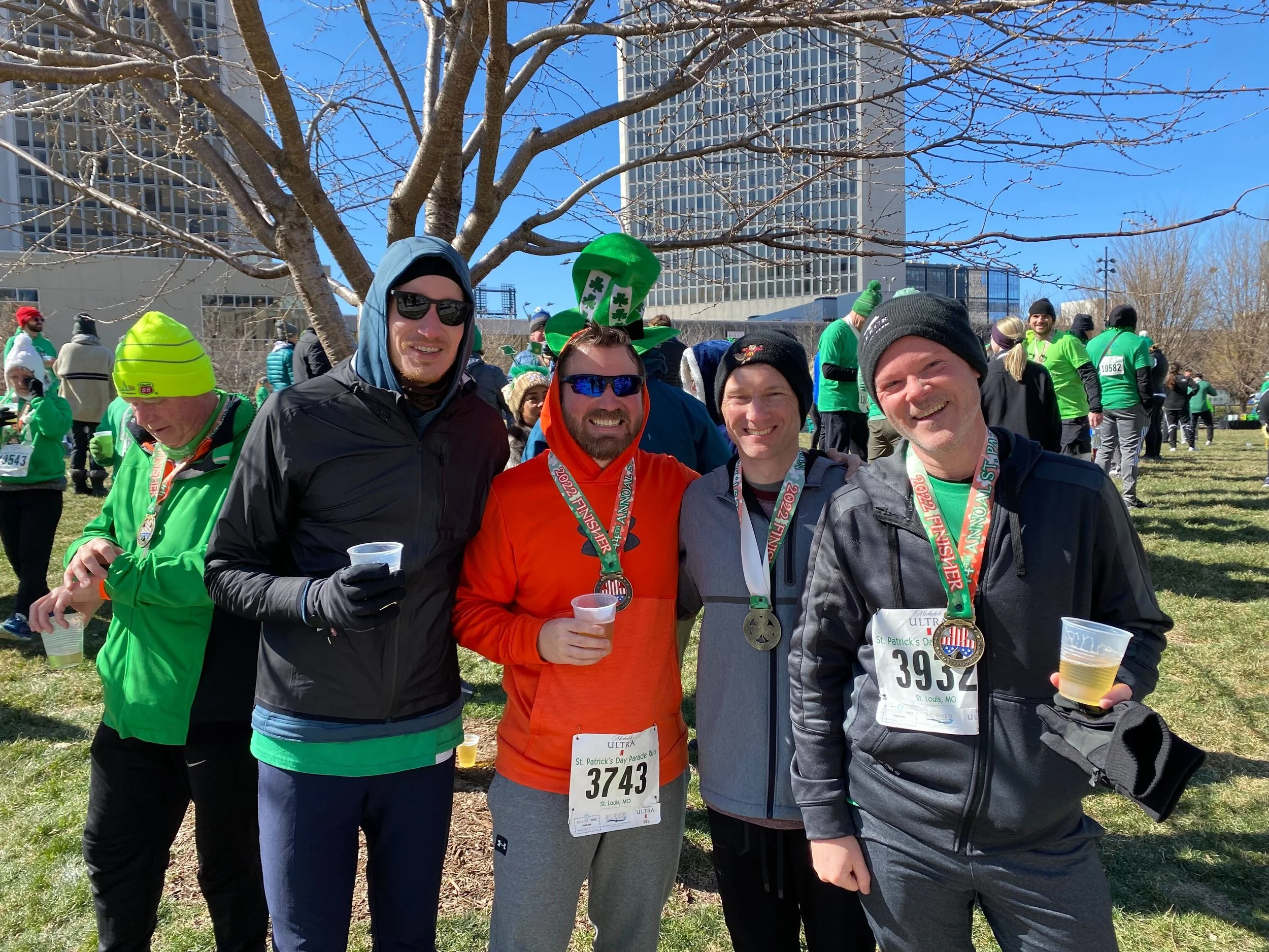 Suddenly a left turn and I see the inflatable arch at the finish. I’m right there. One more runner passes me, and I notice it’s someone in my running group. He’s a great guy, and I’m glad he makes it. I spring to life and pick up my cadence. I run through the finish line, then hunch over. I’m in serious pain; the final mile was a blur. Everything hurts. I can’t pinpoint any exact source of agony. I high five my running group partner. I exchange a hug with the other runner who passed me on that final mile.