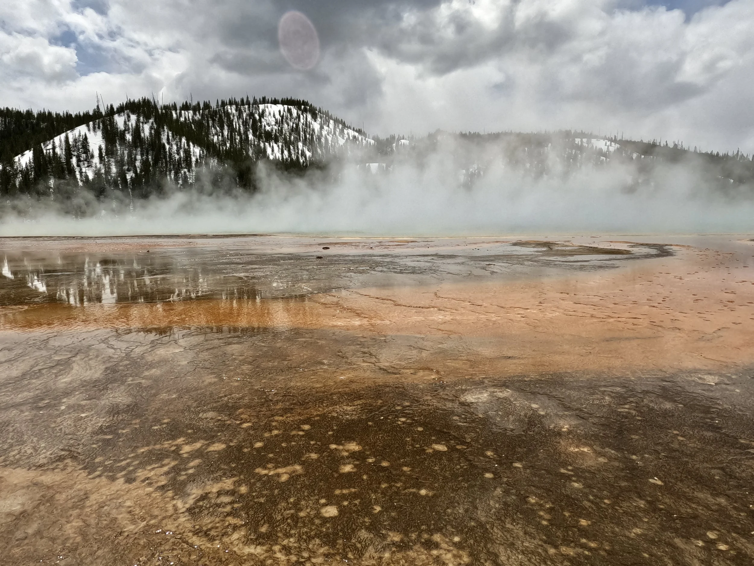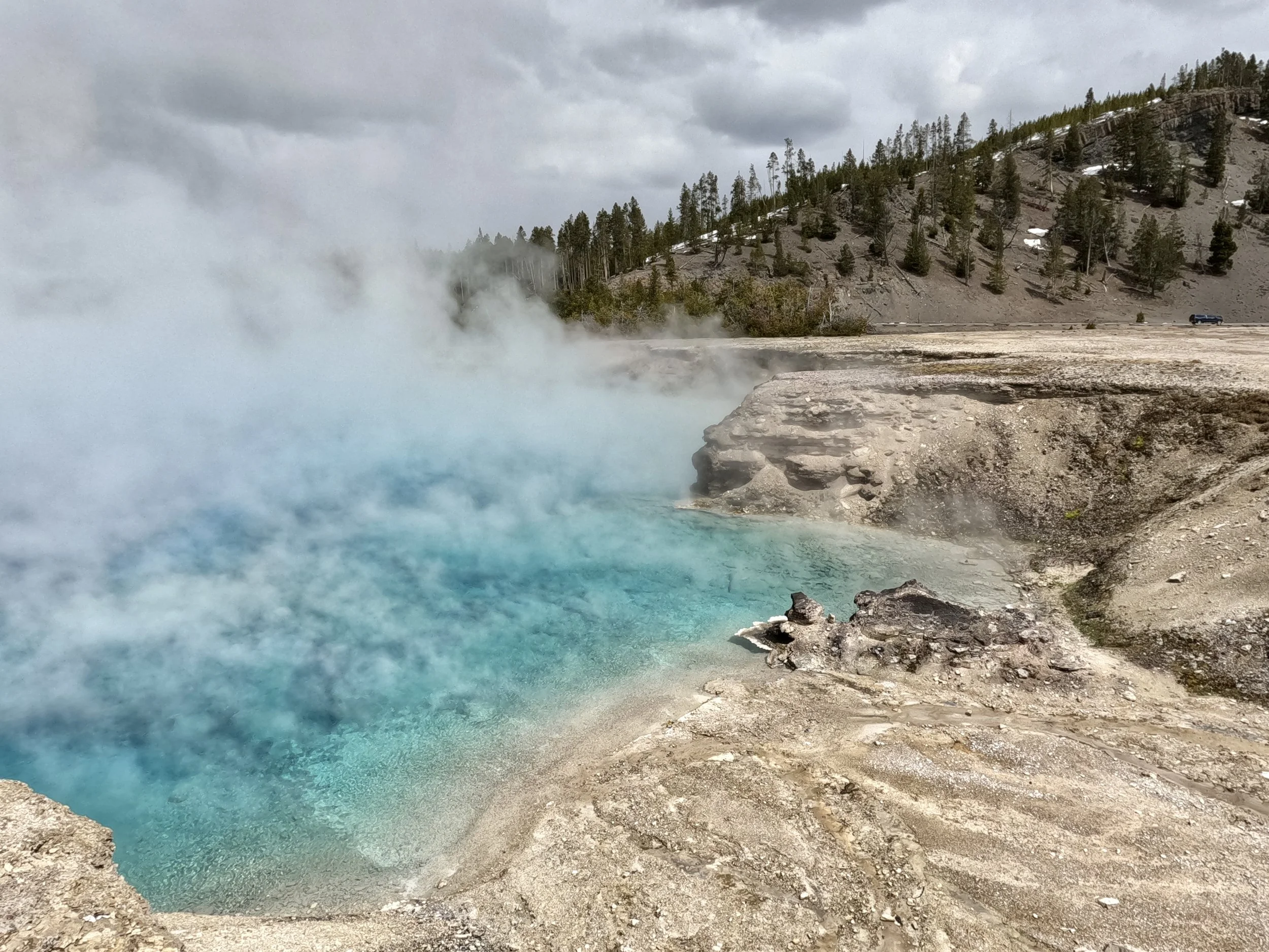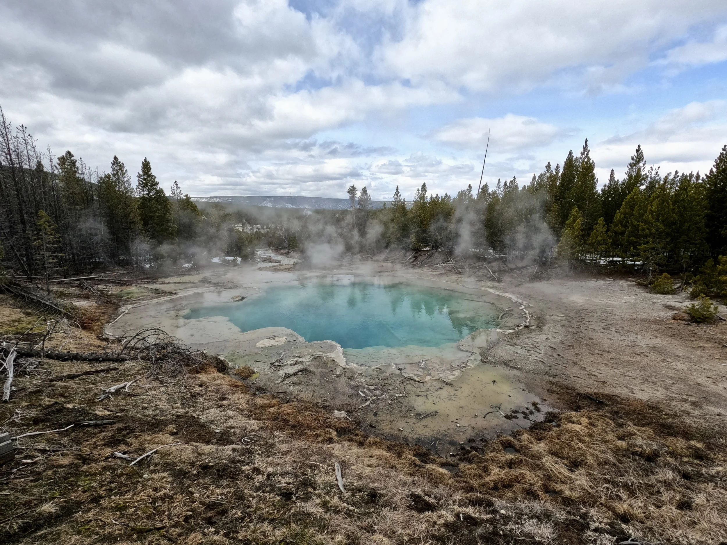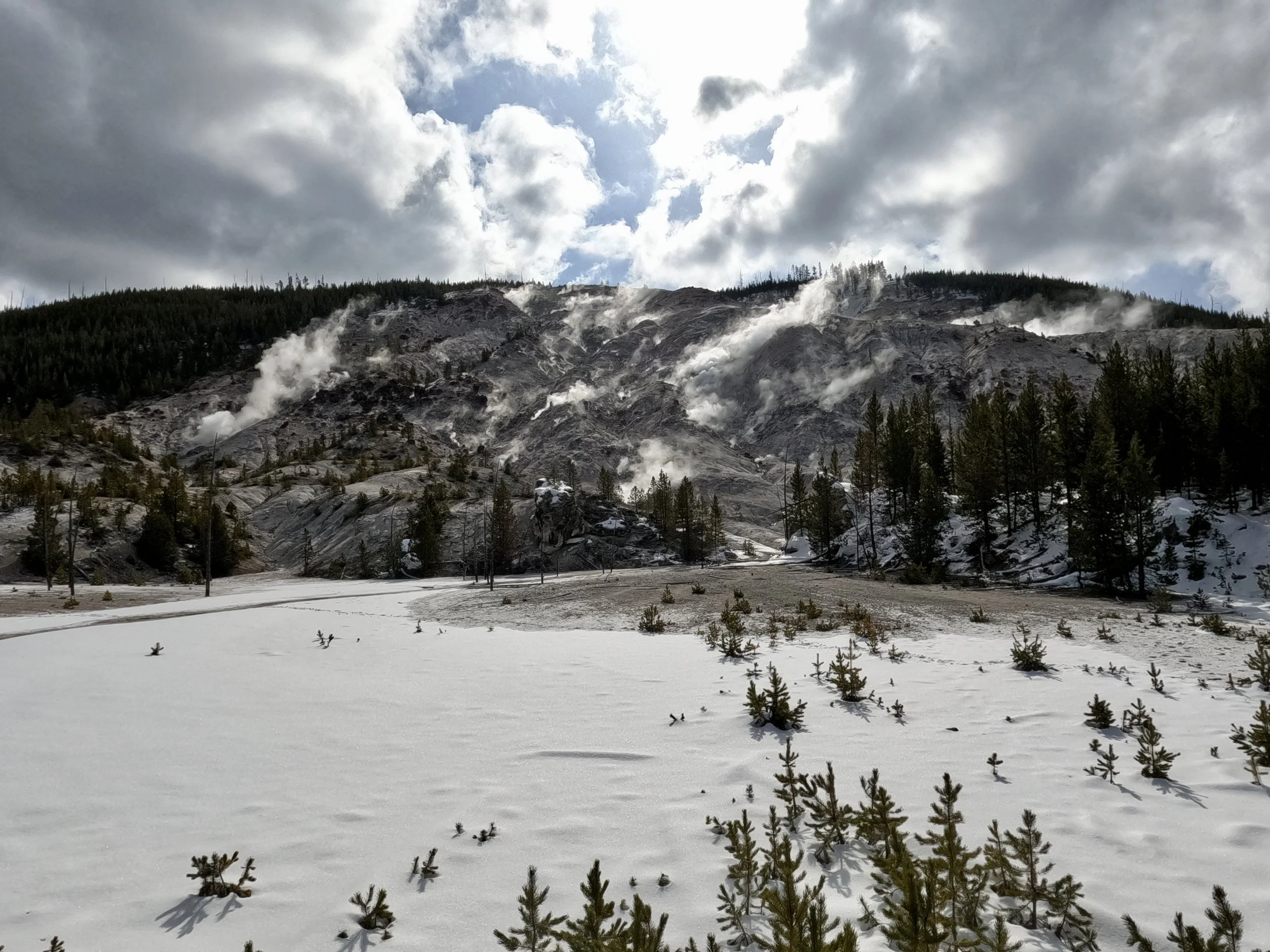 I gazed out at these geysers and steamy springs as I hiked through the park. The plumes and films of steam that the water emitted seemed to tickle the air for all of eternity. I smelled sulfur as I hiked through.